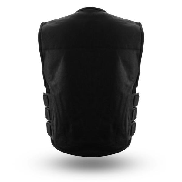 • SWAT style vest with rolled collar nylon triple straps over adjustable side panels