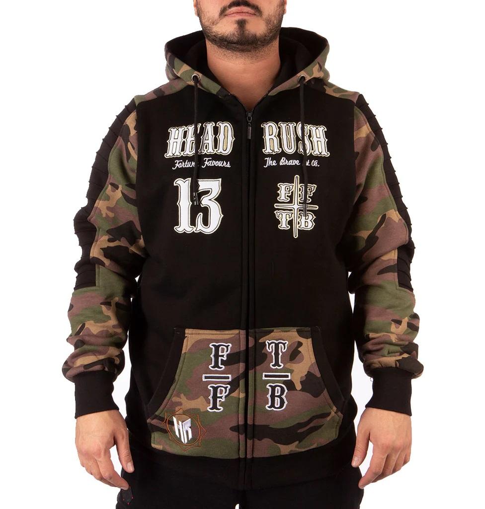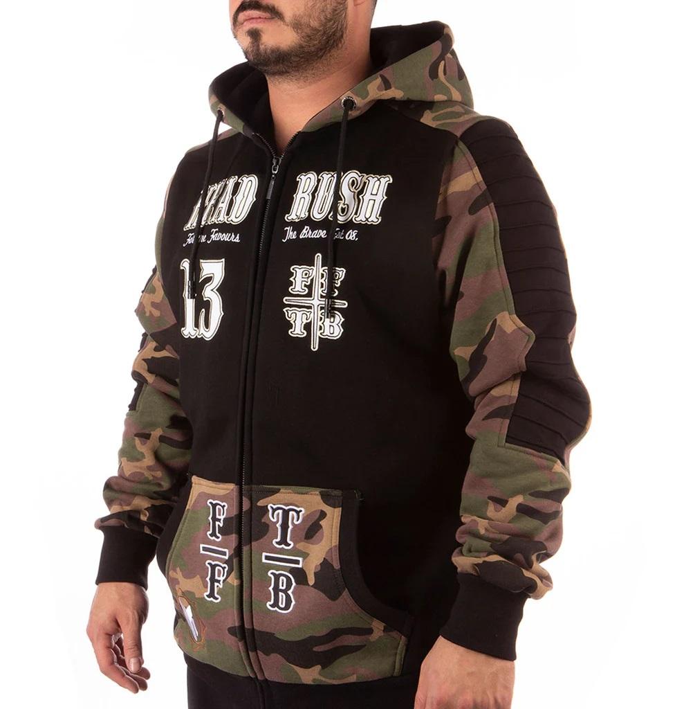 Sweat à capuche zippé avec appliqué auto-tissu imprimé contrasté