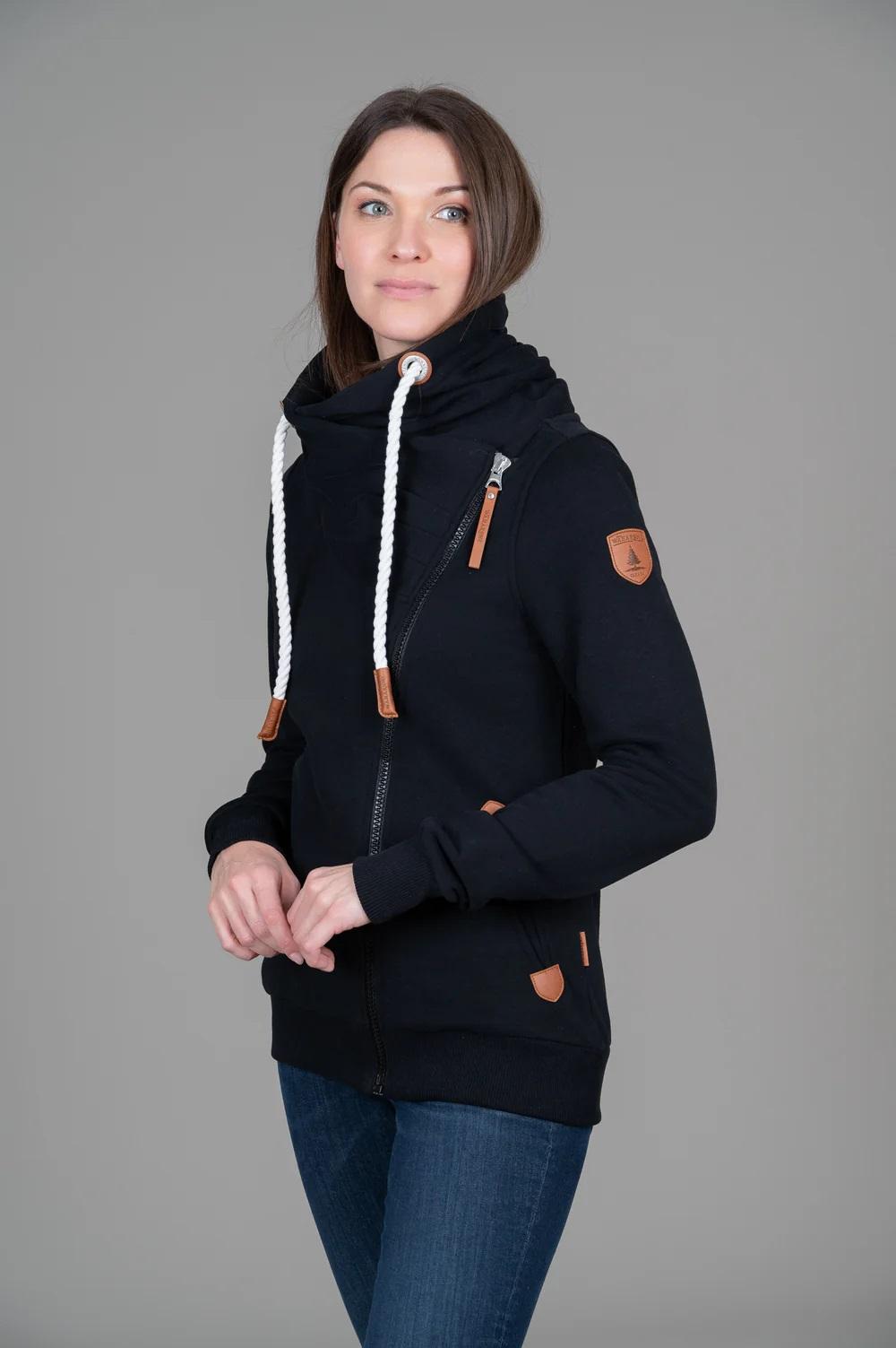 Col bénitier en tissu éponge avec fermeture éclair sur le côté pour femme en noir