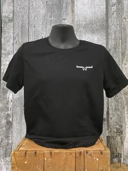 H5SM-1003-A100 Color: BLACK Print on front and back Machine wash cold inside out, do not bleach Tumble dry low, low iron if necessary, do not iron on print 80% Cotton / 20% Polyester, 180 GSM