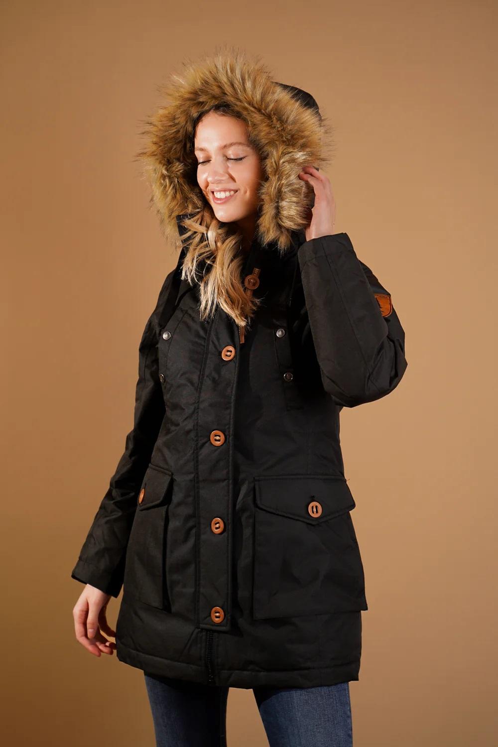 Parka imperméable en duvet pour femme en noir